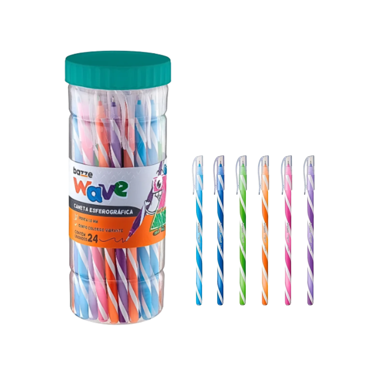 Kit 24 Canetas Esferográficas 1.0 Bazze Wave – 6 Cores Vibrantes e Cheias de Estilo!
