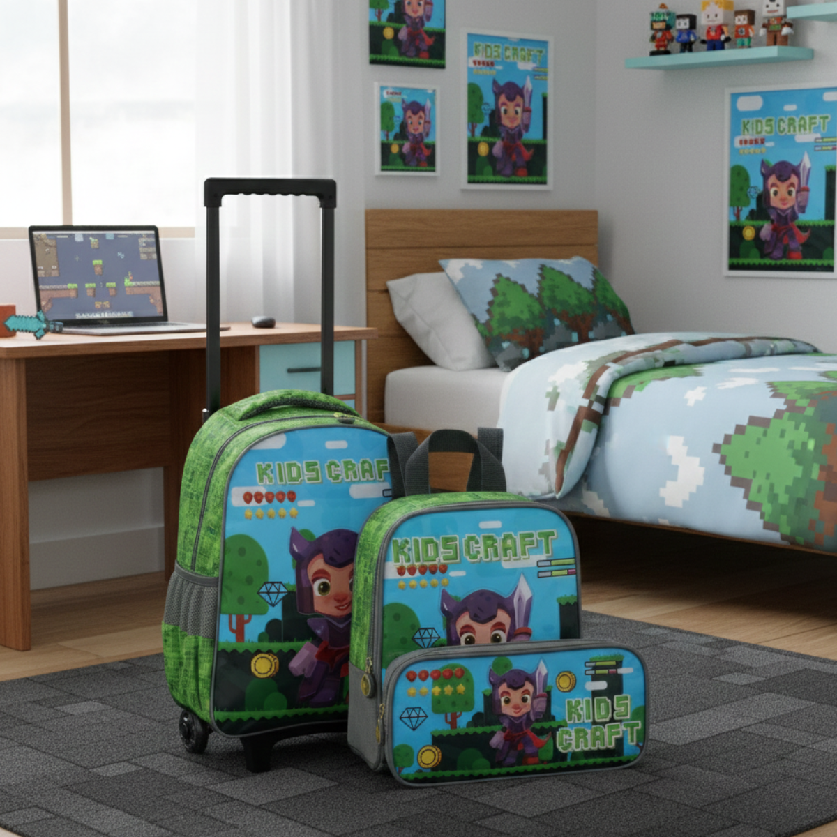 Kit Escolar Kids Craft - Mochila de Rodinhas, Lancheira e Estojo