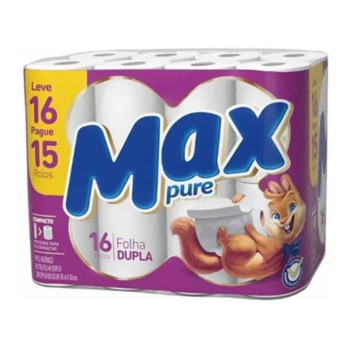 O Papel Higiênico Folha Dupla c/16 Rolos 30m Max Pure é a escolha ideal para quem busca máxima qualidade, conforto e economia. Feito com folha dupla, proporciona maior resistência, excelente absorção e uma textura macia, garantindo uma experiência confortável durante o uso diário. Cada embalagem contém 16 rolos, com 30 metros cada, oferecendo alto rendimento e praticidade, perfeito para uso domiciliar ou espaços com maior demanda. O produto combina eficiência e custo-benefício, sendo uma solução confiável para suas necessidades essenciais.