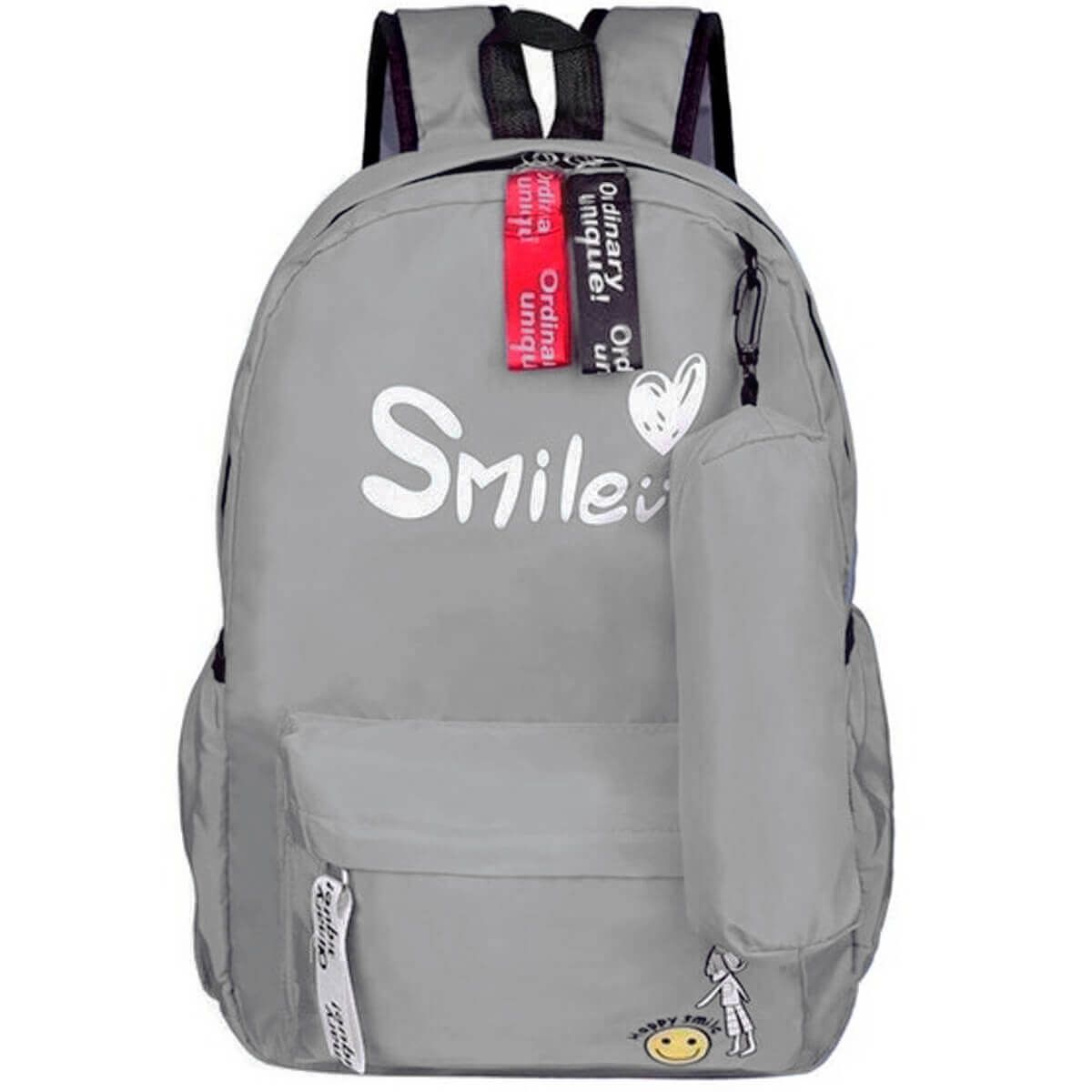 MOCHILA JUVENIL HAPPY SMILE CINZA