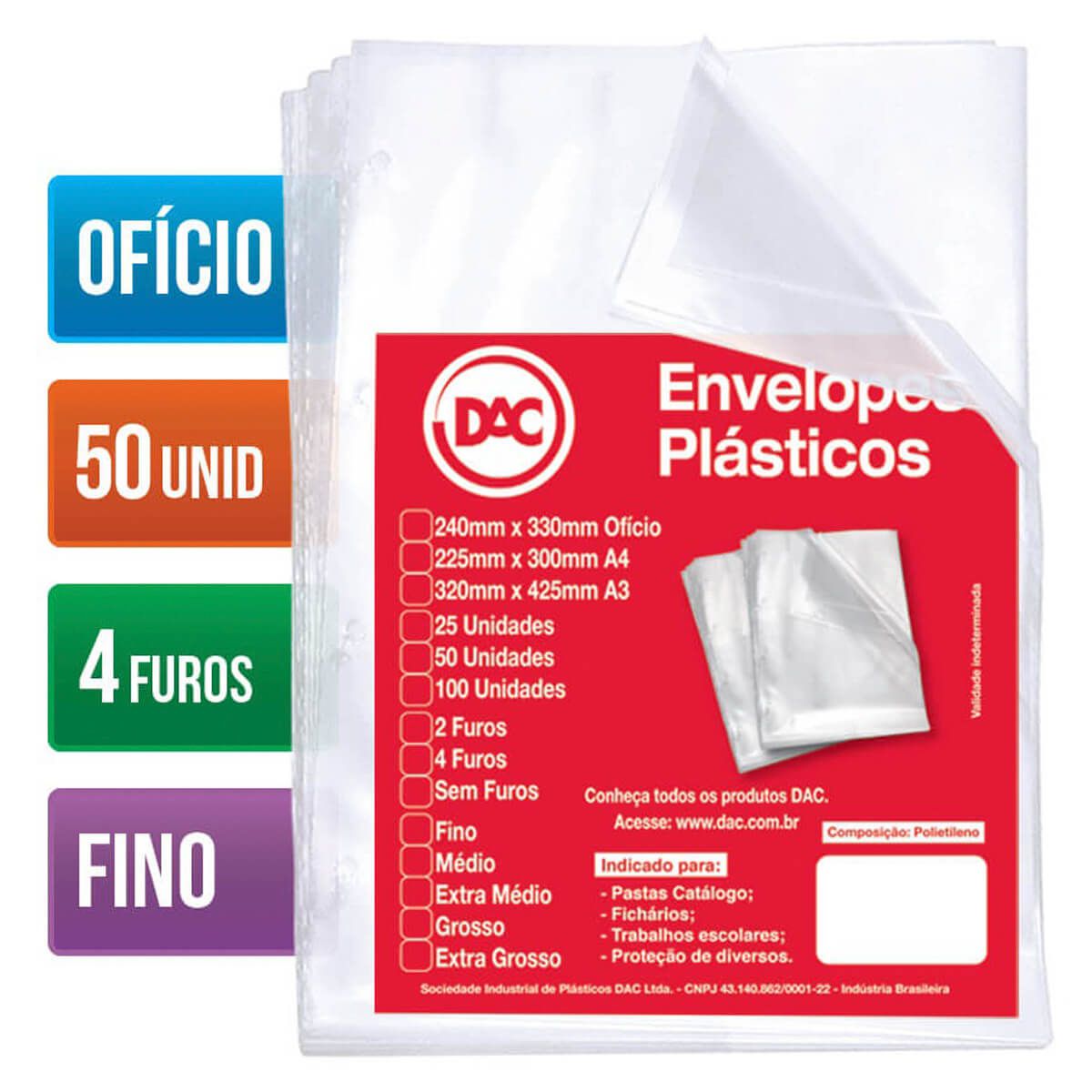O Saco Plástico PP Ofício 4 Furos 0,06mm Fino C/50 DAC é uma solução econômica e funcional para proteger e organizar documentos no formato ofício. Fabricado em polipropileno (PP) transparente, com espessura fina de 0,06 mm, ele protege os papéis contra sujeira e pequenos danos do dia a dia. Possui 4 furos padronizados, tornando-o compatível com diversos tipos de fichários e pastas. É ideal para uso cotidiano em escritórios, escolas ou até em casa, oferecendo leveza e praticidade para o arquivamento de documentos. O pacote com 50 unidades atende perfeitamente a necessidades de baixa a média demanda.