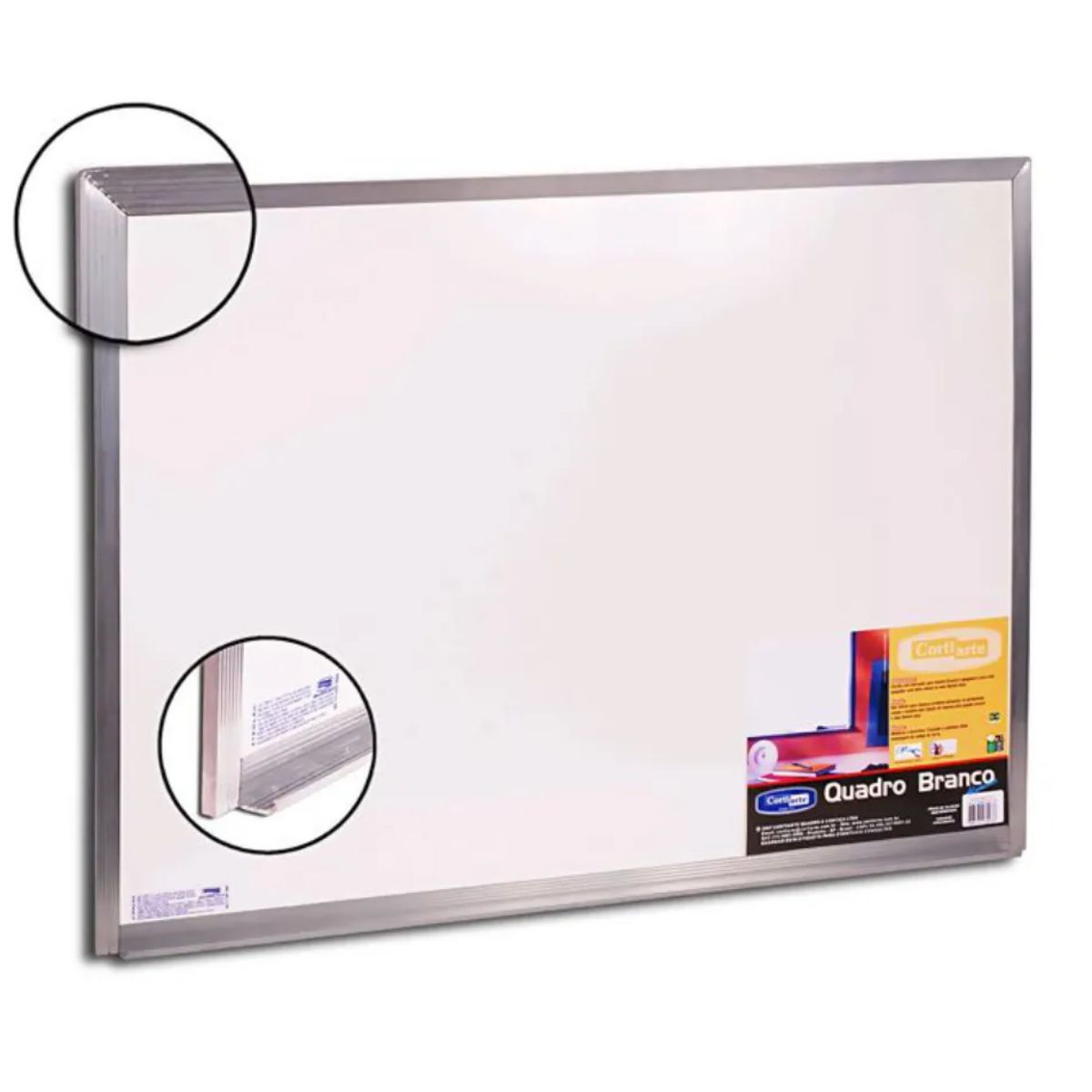 O Quadro Branco 150x120 com Moldura de Alumínio e Apoio - Cortiarte é um excelente aliado para reuniões, aulas, apresentações ou organização do dia a dia. Sua ampla superfície branca, de alta qualidade, é perfeita para escrita com marcadores de quadro branco, garantindo fluidez na escrita e uma limpeza simples, sem manchas ou resíduos.